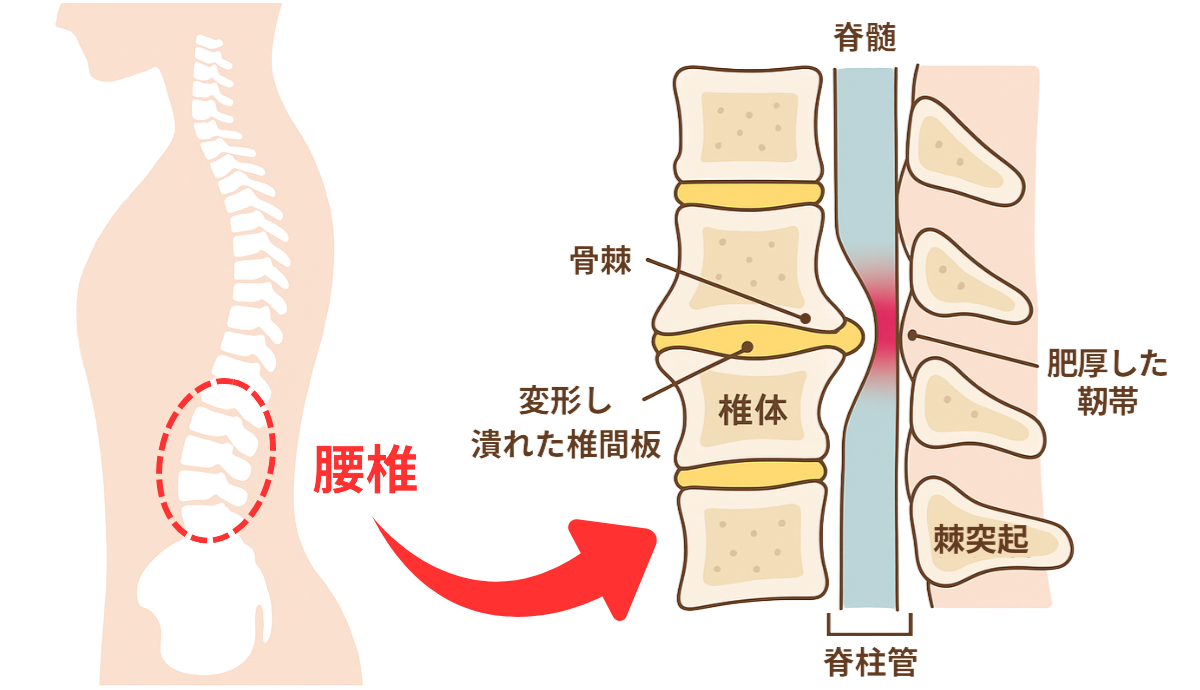 腰椎椎間板ヘルニアは、背骨(腰椎)の間にある椎間板が変性し、中の髄核(ゼリー状の部分)が外側に飛び出すことで神経を圧迫する病気です。